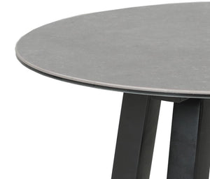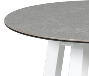 Choose from finish options of Nimbus high-fired ceramic top paired with Tiger Drylac White aluminum and Graphite high-fired ceramic top with Sherwin Williams Black or Patina finished aluminum.