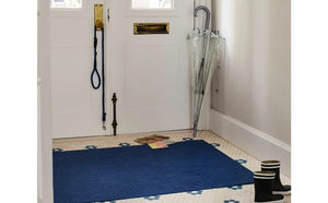 Long lasting, easy to clean, and suited for both indoors and out, this Chilewich Bay Weave Woven Floor Mat in Blue Jean is ideal for use in the entryway, dining areas, bedrooms, living areas, and kitchen!