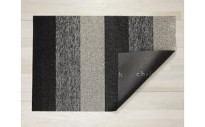 Long lasting, easy to clean, and suited for both indoors and out, this Chilewich Marbled Stripe Shag Mat in Salt & Pepper is ideal for use in the entryway, deck, kitchen, mudroom, patio, or pool area!