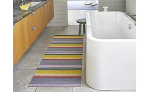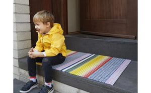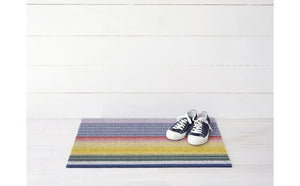 Long lasting, easy to clean, and suited for both indoors and out, this Chilewich Pop Stripe Shag Floormat in Multi is ideal for use in the entryway, dining areas, bedrooms, living areas, and kitchen!
