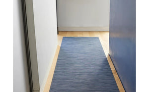 Long lasting, easy to clean, and suited for both indoors and out, this Chilewich Rib Weave Woven Floormat in Indigo is ideal for use in the entryway, dining areas, bedrooms, living areas, and kitchen!
