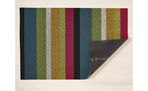Long lasting, easy to clean, and suited for both indoors and out, this Chilewich Bold Stripe Shag Mat in Multi Colour is ideal for use in the entryway, deck, kitchen, mudroom, patio, or pool area!