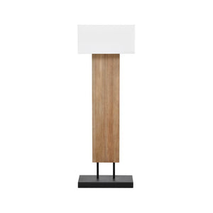 This standing lamp offers a lovely balance of Art Deco and Contemporary aesthetics. Featuring a wood base, and an elegant natural linen lampshade, it effortlessly complements a variety of indoor spaces.