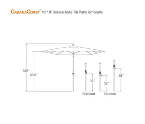 Cabana Coast umbrellas come in a wide range of shapes and sizes, and can be customized with your choice of Sunbrella fabrics. The 8x10 market umbrella includes a convenient auto-tilt feature allowing for optimal sun blocking.