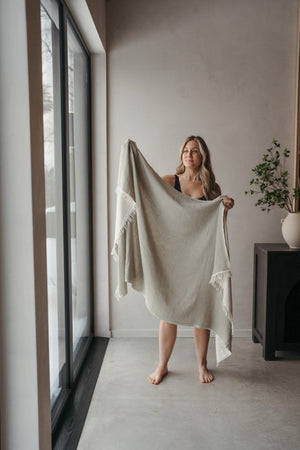 A middle-weight, silky-smooth towel with a bamboo-Turkish cotton blend. Bamboo is a highly sustainable fibre due to its fast growth rate, ability to naturally regenerate, and its high carbon absorption capacity.