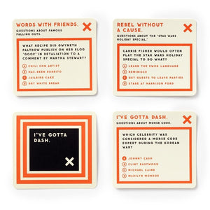 Trivia should be fun–not feel like a homework assignment. That's why this Delightfully Useless Trivia set by Brass Monkey is filled with some of the most pointless knowledge we could find…and even better, you'll choose your questions from a bunch of misleading categories. For example: 'Who's the Boss?' Those are questions about either Tony Danza or the Mafia, by the way.