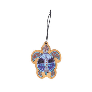 This Wooden Turtle Ornament by Jason Adair is a beautiful and unique way to decorate a tree, bookshelf, or desk while celebrating Indigenous artists. Made from Ipil Ipil wood with a smooth finish and a 3" long hanging cord.
