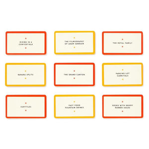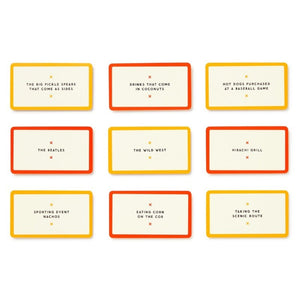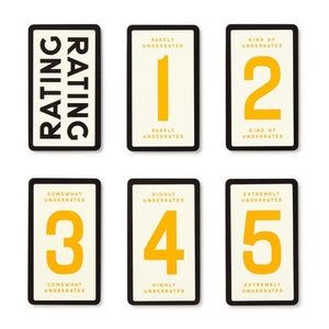 Inside you’ll find over 300 well-known (and entertaining) ‘things’ to weigh in on–from ‘non-alcoholic mixed drinks’ to ‘high school reunions’ and everything in between. You’ll win points for guessing just how under or overrated players think an item is–and then argue about how wrong they are. Includes 200 double-sided cards with 400 prompts like ‘The Beatles,‘ ‘Drinks that come in a Coconut,’ and ‘Avocado Toast.’