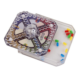 Measuring only 5 x 2.5 x .1.0 inches. Comes complete with 1 Case, 1 Gameboard, and 16 Pegs. All pieces fit inside the pocket-sized case, making for easy storage and take everywhere fun!