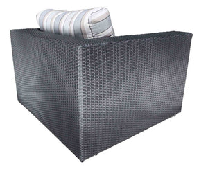 Crafted from a durable hand woven resin wicker on a long lasting powder coated aluminum frame. This oversized seat offers a couch-like design with deep seating and wide armrests.