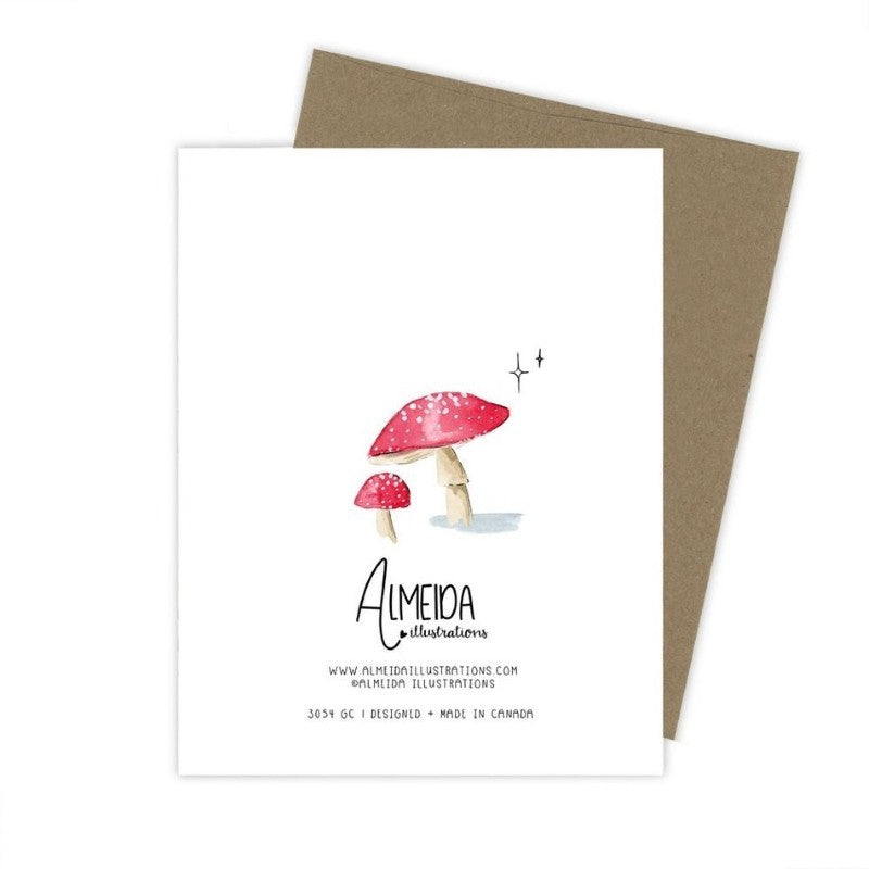 Magical Red Mushroom Birthday Card. Digitally printed in Canada on luxe heavy textured felt paper.