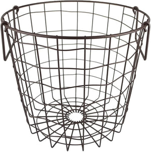 With sturdy wire construction and hanging loops for easy storage this Small Round Hanging Wire Basket is ideal for keeping your home organized. With hanging loops on the back to keep the basket up and off the floor and make use of vertical storage space, this basket is the ideal size for holding mail, extra remotes, mitts and scarves, or even miscellaneous pantry items.