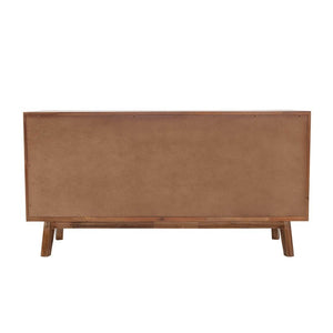 Other Details:Acacia: top, doors, drawer front, legs; MDF Acacia veneer: back panel, side panels, drawer bottom; Frame construction/ Joinery: Mortise and tenon/ Coner block / double dowel/ glue/ screwed; Felt lined top drawers; Finished Back: No (plywood); Tip restraint included;