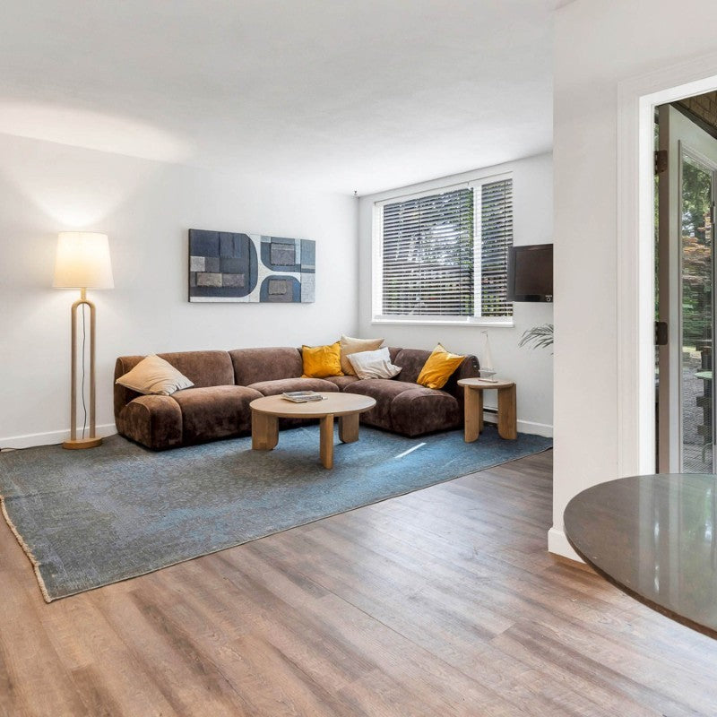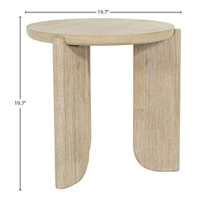 This side table’s compact, round design fits seamlessly into living rooms or bedrooms, adding warmth with its rustic brushed finish.