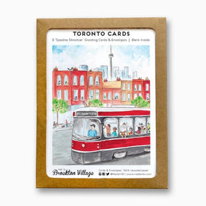 Made in Brockton Village Toronto Spadina Streetcar Boxed Greeting Card. Blank interior for your personal message. Made in Canada of 100% recycled paper, and printed on 100lb enviro matte card stock. Shop the entire Toronto Greeting Card collection!