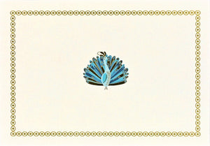 A jewel-like peacock design, set off with a decorative gold foil border, is the focus of these elegant note cards.