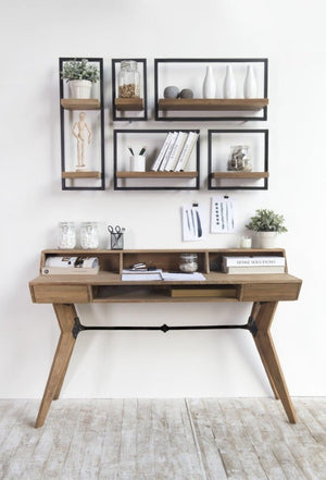 The D-Bodhi Metal Frame Wall Box - Type E is crafted from recycled teak wood with an iron frame for durability and stability. It can be customized along with any combination of D-Bodhi shelving to create your own feature wall. The wood is sourced from support beams and outer panels of old houses, which gives each piece a unique character.