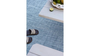 Long lasting, easy to clean, and suited for both indoors and out, this Chilewich Mini Basketweave Woven Floor Mat in Chambray is ideal for use in the entryway, dining areas, bedrooms, living areas, and kitchen!