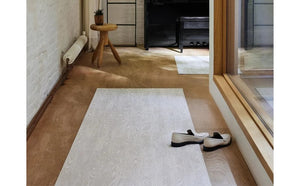 Long lasting, easy to clean, and suited for both indoors and out, this Chilewich Woodgrain Woven Floor Mat in Birch is ideal for use in the entryway, dining areas, bedrooms, living areas, and kitchen!