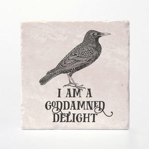 Protect your tables from difficult water rings with this fun and cheeky I Am A Goddamned Delight Effin' Birds Coaster! Made from ceramic with a cork bottom to prevent scratching, it is ideal for everyday dining or entertaining.