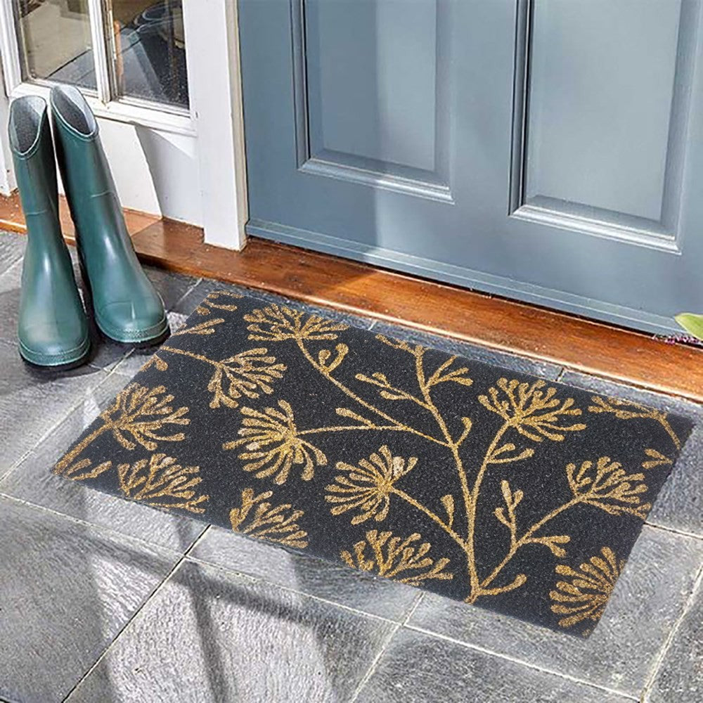 Simple and sophiticated, the Wild Flower Coir Mat is a classic accent to any home entryway! Featuring a rubber backing, this door mat makes for a great all weather flooring option for keeping shoes dry and hallways tidy.