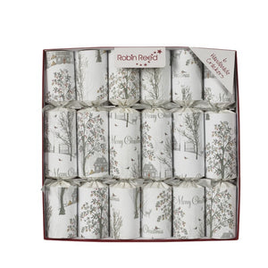 Six handmade traditional English crackers. Each cracker contains a snap, joke, party hat, and a surprise gift. Place one at each place setting for decoration and then pull it open with a friend and share the fun!