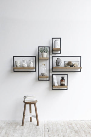 The D-Bodhi Metal Frame Wall Box - Type A is crafted from recycled teak wood with an iron frame for durability and stability. It can be customized along with any combination of D-Bodhi shelving to create your own feature wall. The wood is sourced from support beams and outer panels of old houses, which gives each piece a unique character.