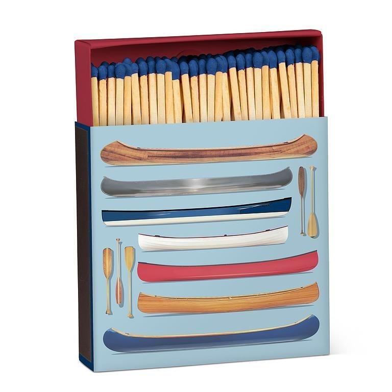 Add some colourful flair to your fireplace or chiminea with the help of this Stacked Canoes Square Matchbox. An Abbott Exclusive from Manmade Studios, this square matchbox features rustic canoe art. Each matchbox includes 100 wooden matchsticks and makes a great add-on to tealights and candles.