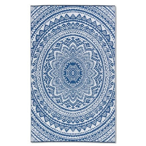 Inspired by traditional slitweave kilim rugs, the Mandala Blue Outdoor Carpet mixes a variety of blue tones in a stunning, fully reversible pattern.