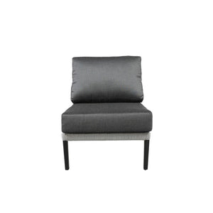 Combining durable powder coated cast aluminum with woven Sol Rope™, the Gambrel Outdoor Slipper Chair can be paired with corresponding modular pieces from the Gambrel line for a full outdoor sectional.