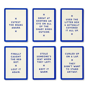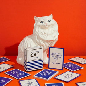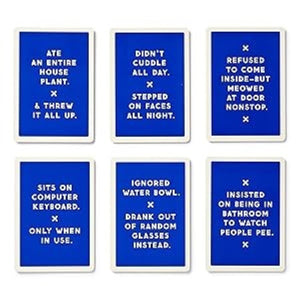 Oh, right. This oversized deck of cat ‘milestone cards’ by Brass Monkey includes 50 praise cards and 50 shame cards, perfect for photographing next to the world’s largest hairball that your cat just gagged up.