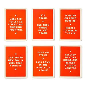 This oversized deck of dog 'milestone cards’ by Brass Monkey includes 50 praise cards and 50 shame cards, perfect for photographing next to their latest kill–your shoes.