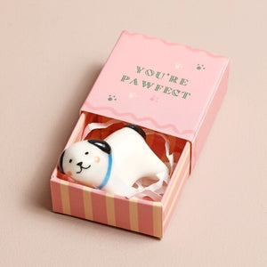 These tiny colourful matchboxes feature an even tinier ceramic token inside, glazed and glossy and ready to sit on a shelf or in someone's pocket.