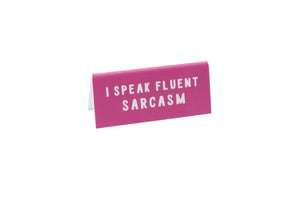 'I Speak Fluent Sarcasm' Pink Desk Sign