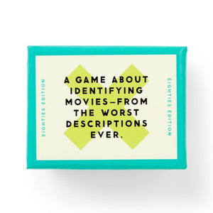 A party game all about identifying movies–from the worst descriptions humanly possible. Features 125 game cards–each featuring a uniquely-terrible description of an 80s movie. Includes instructions for two distinct ways to play (competitive & casual).