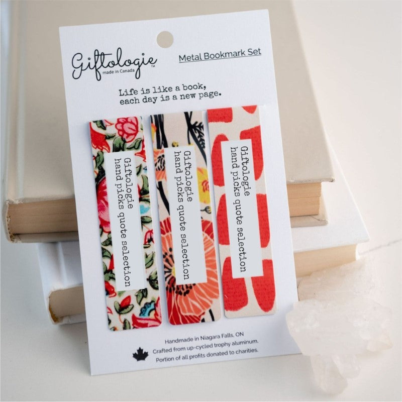 Life is like a book, each day is a new page. Aluminum metal bookmarks clip to fit around the page to hold your spot. Upcycled and recyclable. Infused with image, vibrant and durable finish. Bookmarks measure 4 x 1 when wrapped around the page.