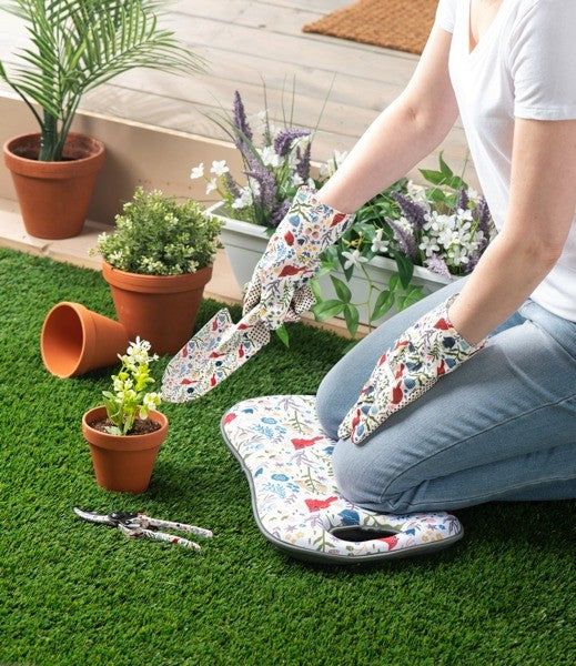 A comfortable, durable kneeling pad featuring a vibrant cardinal and floral design. Provides cushioned support for gardening tasks, protecting your knees while adding a touch of charm to outdoor work.