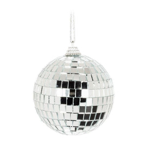 Add some disco-inspired dazzle to your holiday decor with this eye-catching Mirror Ball Ornament in Silver. This glass and styro piece is a dynamic ornament that's sure to bring some sparkle and glamour to any Christmas tree.