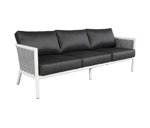 Harlow's sheltering, rounded back and neo retro angled back legs set the tone for effortless style and serenity. It combines a durable aluminum frame, deep seating cushions, and Sol Rope® details.