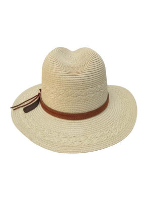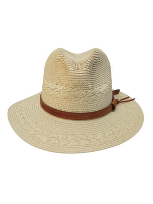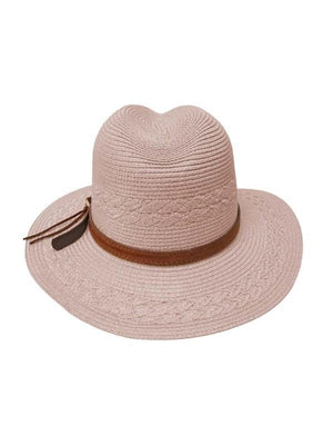 Add some comfort and style to sunny days with this straw fedora with suede band. A classic silhouette with a structured design, it features a unique pattern on the crown and brim, and tight braiding that ensures durability and shape.