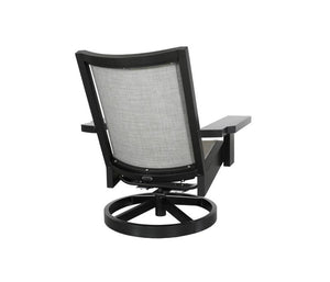 The Hockley Outdoor Lounge Swivel Rocker is available in a Black aluminum frame with a Augustine Pewter Sunrella Sling fabric or a TigerDrylac White with a Sailing Seagull Sunbrella Sling Fabric