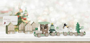 Crafted out of wood, this adorable set of four features rustic holiday houses complete with a "Merry Christmas" banner that are perfect for holding your place cards and adding a cozy touch to your holiday table to make everyone feel right at home.