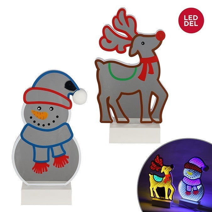 USB-powered 28cm infinity light decoration in Reindeer or Snowman design—perfect for festive tabletops with a magical glow.
