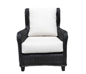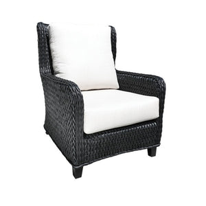 Elegant and comfortable, it's crafted from a Sol Weave® Resin Wicker Twist on a durable powder coated aluminum frame. It features an elevated back and comfortable armrests making it ideal for unwinding and relaxing.