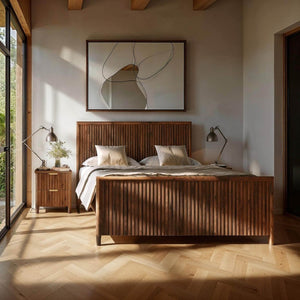 Discover the perfect blend of rustic charm and modern elegance with this bed. Crafted from sustainably sourced FSC certified recycled pine, this bed boasts a beautiful slatted texture that runs from the headboard to the footboard.