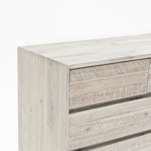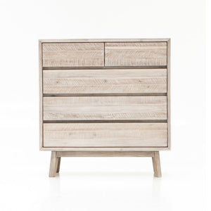 The Gia Collection draws inspiration from Scandinavian design with its soft colour pallet and minimalism. Catering to modern living, the Gia Collection is constructed from durable steel brushed acacia and features a light neutral finish that will brighten up any space. Simple and elegant, the Gia 5 Drawer Chest features slotted handles and provides ample storage space inside with its 5 soft-closing drawers.