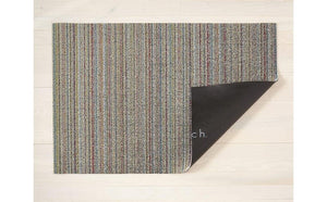 Long lasting, easy to clean, and suited for both indoors and out, this Chilewich Skinny Stripe Shag Mat in Soft Multi is ideal for use in the entryway, kitchen, mudroom, patio, or pool area!