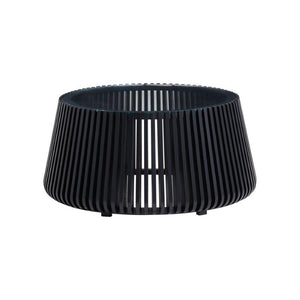 - Has a 35" diameter and is low profile. Great for small spaces, and for those looking for contemporary style, yet warmth in their décor. The slatted wood pieces are solid and made of Acacia wood.