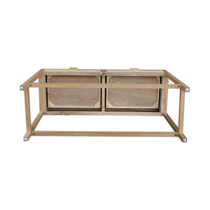 The solid oak wood frame, oak veneer surface, wicker accents, and antique brass metal handles makes this attractive collection a cheery addition to your home. Perfect for storage in the entranceway, hallway, living room, or bedroom.