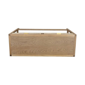 - Solid oak wood frame / oak veneer surface / wicker accents / antique brass metal handles
